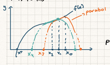• To find the next guess (), we would “forget” the oldest point () and repeat the process using the points .
